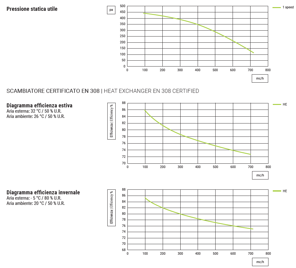 | Modello | Efficienza | Portata aria nominale | Pressione statica utile | SFPInt | SFP-2018 | Velocità frontale | Efficienza ventilatore | Leakage interno | Leakage esterno |