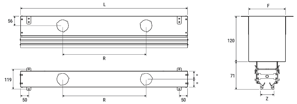 | Modello | L | Z | Stacchi (predisposizione) | Passo R | Stacchi | Supporti | F |